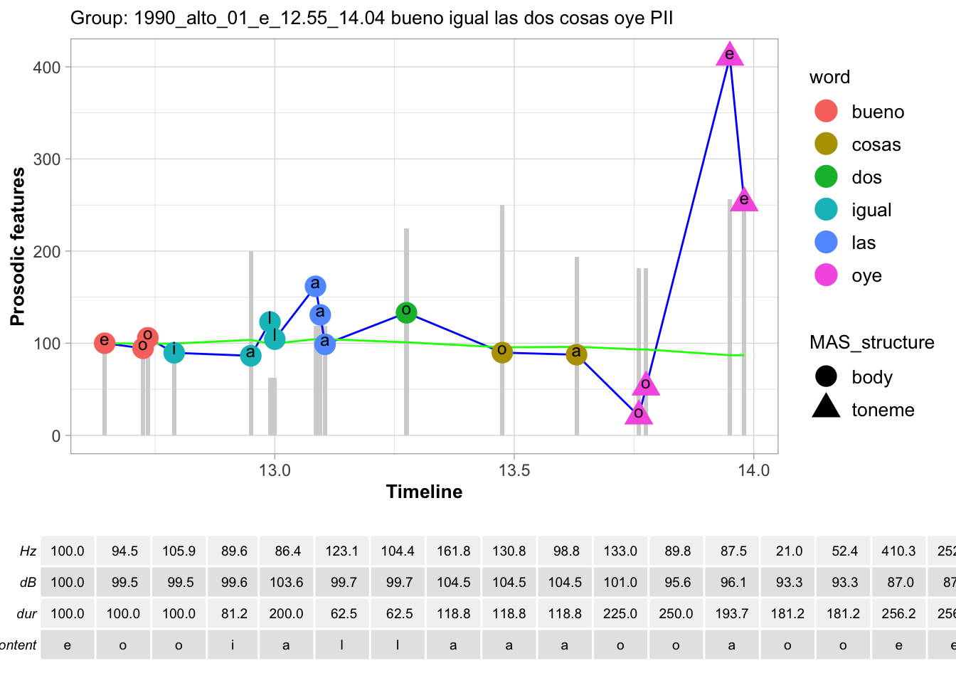 Oralstats (Cabedo, 2021) has been developed as an exploration environment combining information from speech transcripts with pitch and intensity data obtained from Praat.