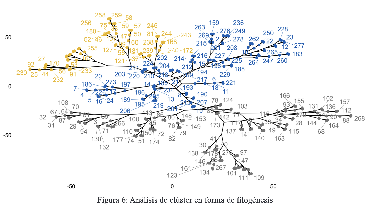 Imagen que crea clústeres o grupos por color (forma filogénesis)