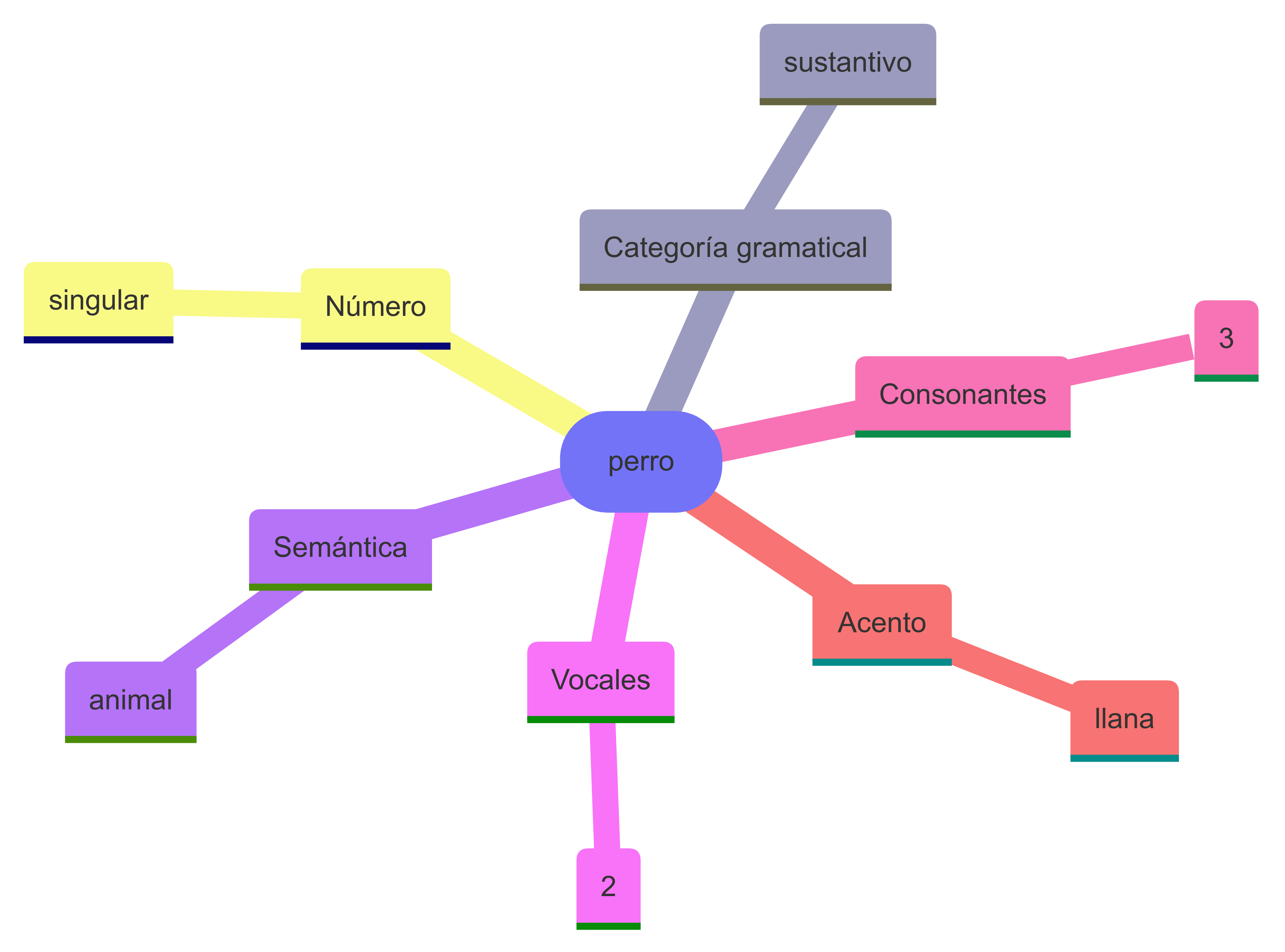| Palabra | Categoría gramatical | Número | Semántica | Vocales | Consonantes | Acento |